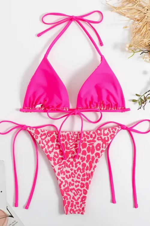• Swim Wear Hot Pink Print Bikini Set Two Pcs Set